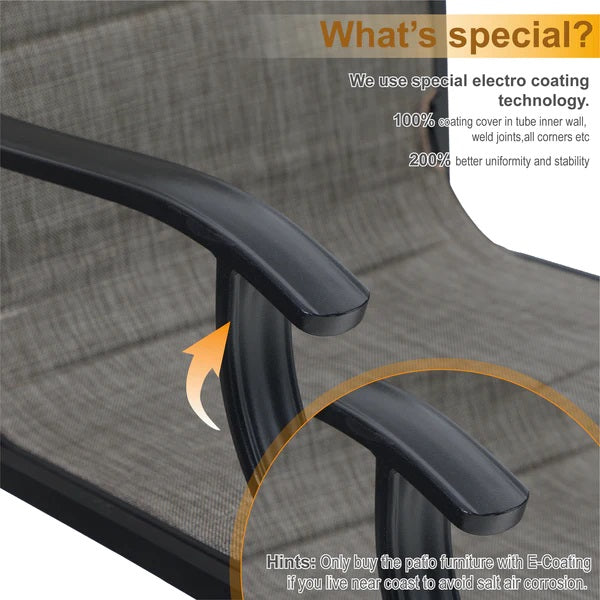 Robustes Material: Die pulverbeschichteten Stahlrahmen sind langlebig und rostfrei. Die Stühle sind witterungsbeständig und halten einem Gewicht von bis zu 300 lbs stand. Der atmungsaktive und schnell trocknende Stoff ist lichtecht und schmutzabweisend.